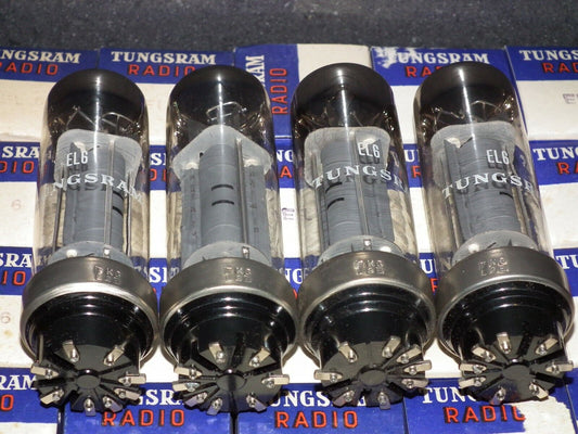 Platinum matched quad EL86 6CW5 Mullard Blackburn NOS OLD TYPE D GETTER, 1962