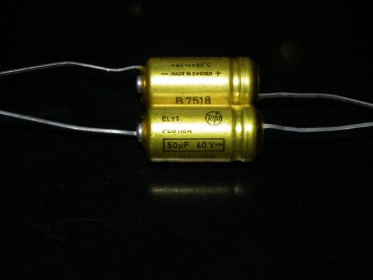 Two (2 pcs) Vintage NOS Capacitors RIFA 50u 40V Made in Sweden in 70s