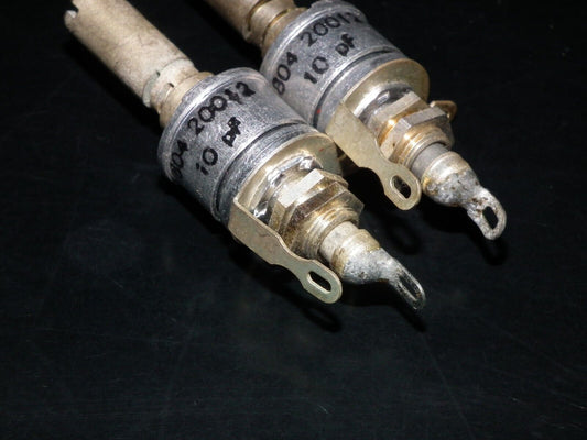 Two (2) NOS Beehive 2pF - 10pF variable trimmer capacitors - tubular piston caps