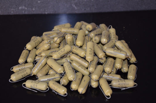 Two vintage Mullard Mustard Philips Capacitors 0.15mfd / 400V Marshall,Fender ..