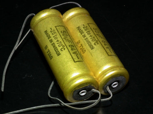 Two vintage NOS capacitors 50uF 64V Rifa Sweden ELYTIC BI-Polar Made in 1972
