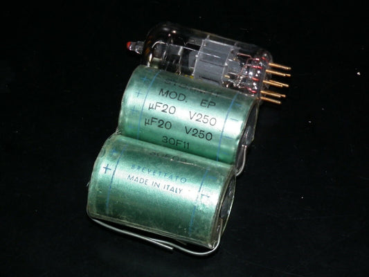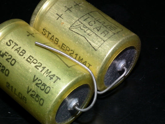 Two vintage NOS capacitors 20uF 250V ICAR Stabilitic Condensatore Elettrolitico