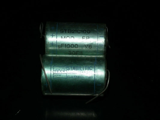 Two vintage NOS capacitors 1000uF 6V ICAR Stabilitic Condensatore Elettrolitico