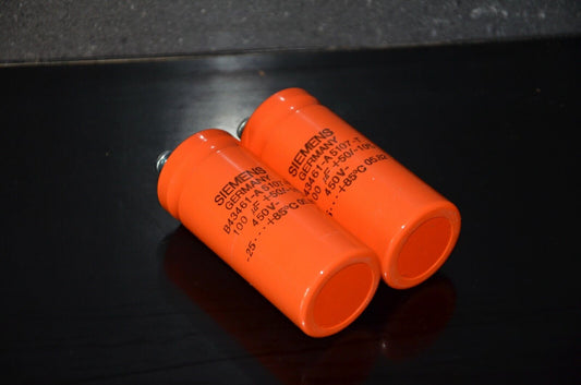 Two vintage NOS electrolytic capacitors 100uF 450V Siemens Germany (screw term.)