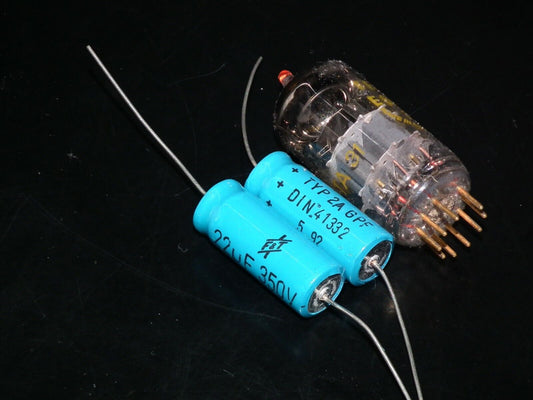 Two vintage NOS F&T electrolytic capacitors 22uF 350V Made in West Germany 70s