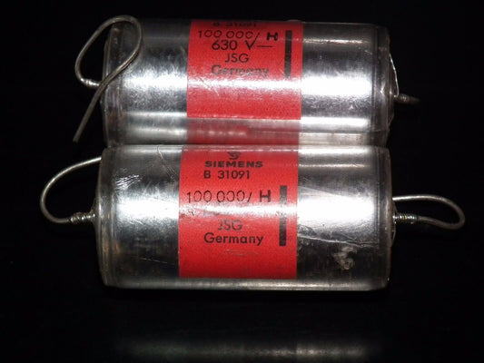Two vintage NOS Polystyrene Capacitors 0.1mfd / 630V Siemens Klangfilm Hi End