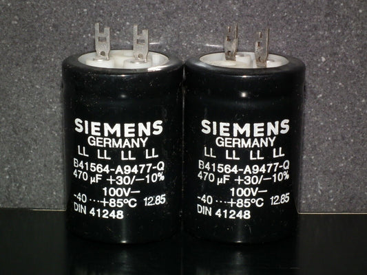 Two vintage NOS electrolytic capacitors 470uF 100V Siemens Germany LL Long Life