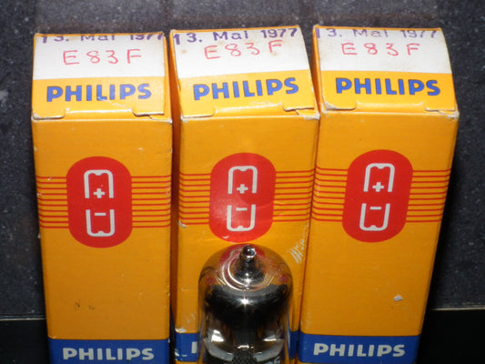 E83F Philips Matched Pair NOS NIB Heerlen 1961 Big round getter LOW Noise
