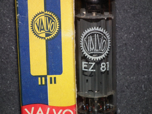 EZ81 Mullard 6CA4 NOS NIB Blackburn Square Getter VALVO Old Box