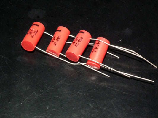 Four vintage polystyrene styroflex capacitors 1408pF 0.5% 125V Koweg West German
