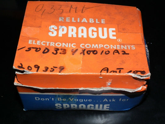 Four vintage NOS 0.33u 10V Sprague 150D Tantalum Capacitor Axial Leads