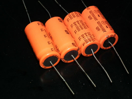 Four vintage NOS electrolytic capacitors 1000uF 25V Siemens W Germany Orange Can