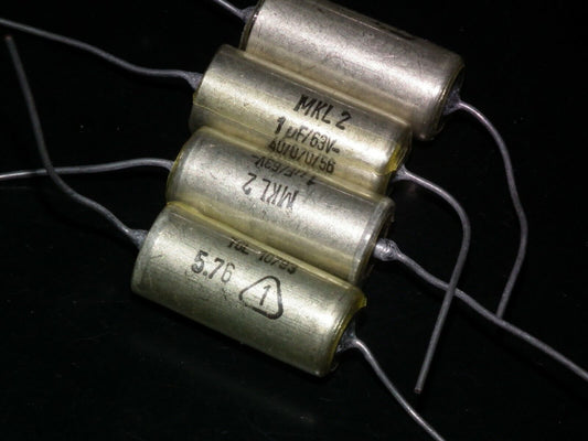 Four vintage NOS capacitors 1uF 63V MKL2 Made in West Germany in 1976 1mfd 63V