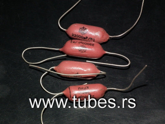 Four vintage NOS capacitors 22nF / 0.022uF 250V ISKRA KFMU metalized polyester