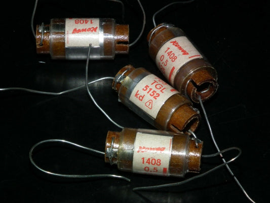 Four vintage polystyrene styroflex capacitors 1408pF 0.5% 125V Koweg West German