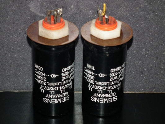 One used vintage Siemens capacitor 100u + 100u 350V Klangfilm tested W Germany