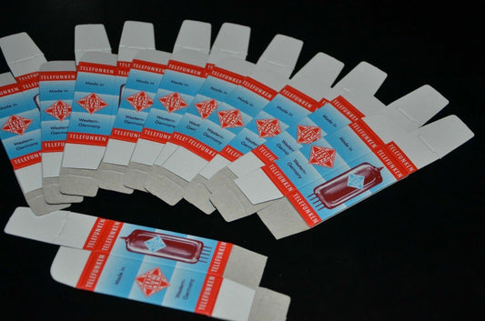 50 Stück TELEFUNKEN Röhrenboxen für Audioröhren ECC81-ECC88, E88CC E188CC...