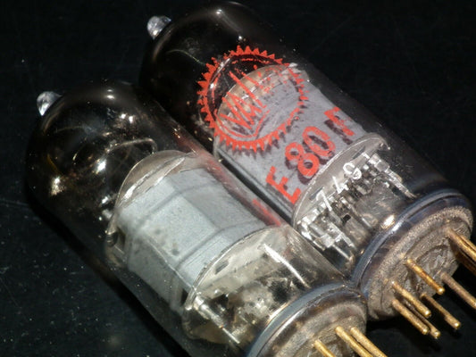 E80F Valvo 6084 Matched Pair RARE D GETTER Pinched Waist Red Logo Hamburg 1956