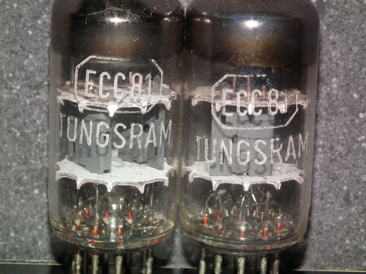 Matched Pair ECC81 12AT7 Siemens old type rebranded Tungsram, white logo (Used)