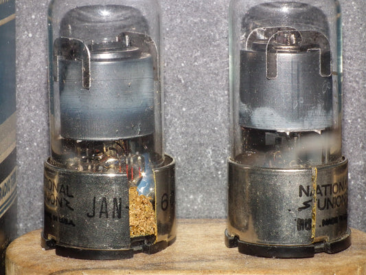 Matched Pair NOS National Union 6C5GT Cracked Metal Collar