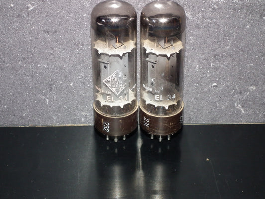 EL34 Telefunken OO Getter Brown Base Matched Pair Ulm West Germany