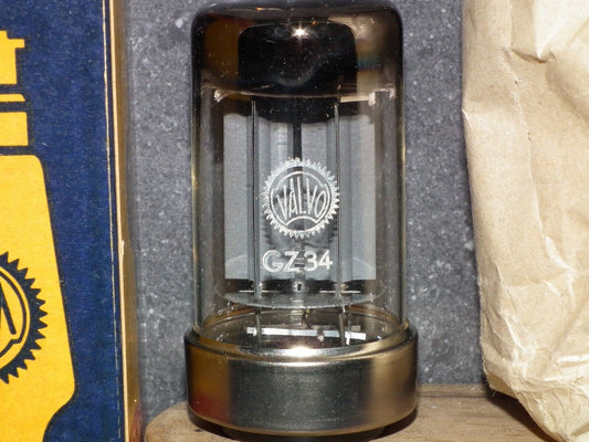 GZ34 Philips 5AR4 rectifier RARE Metal Base DD Getter NOS NIB 1955 branded Valvo