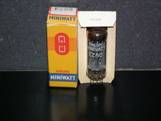 EZ80 Philips 6V4 NOS NIB RARE D Getter made by Mazda Brussels in 1960