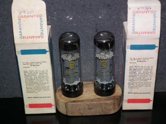 EL34 RFT RARE Short Base Platinum Matched Pair 085 Germany 60s Tested NOS 100%