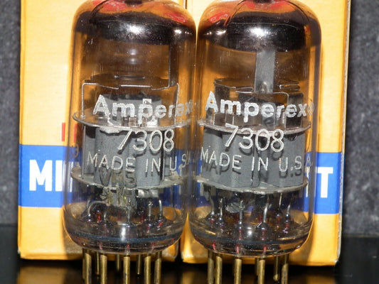 7308 Amperex E188CC RARE gray shield, matched pair, tested NOS, gold pins 1961