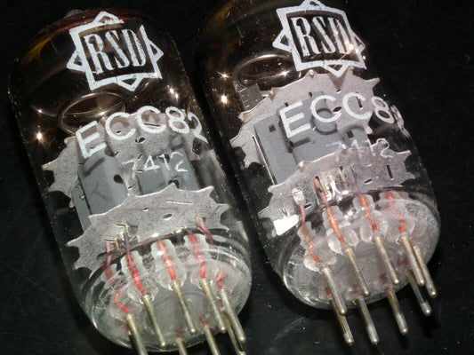 ECC82 12AU7 RFT rebranded RSD, NOS NIB Platinum Matched Pair, the same codes 70s