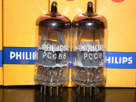 Platinum Matched Pair PCC88 Philips 7DJ8 Heerlen Holland Made in 70S NOS NIB