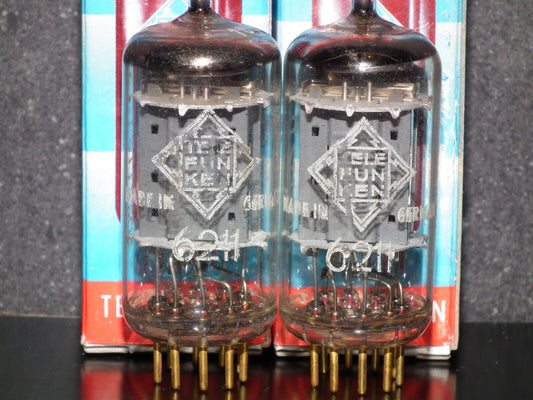Platinum Matched Pair 6211 Telefunken ~ECC82 Tested NOS DB Gold Pins Same codes