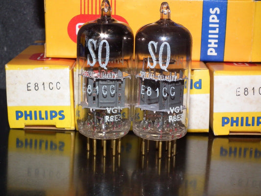 Mullard E81CC (ECC81 12AT7) NOS matched pair (Made in 1968) Gold Pins Philips