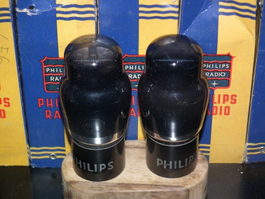 6F6G Philips USA Platinum Matched Pair NOS NIB Black Coated Old Type flat getter