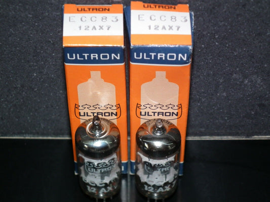 ECC83 Philips France 12AX7 Matched Pair Ribbed plates, Rebranded ULTRON NOS NIB