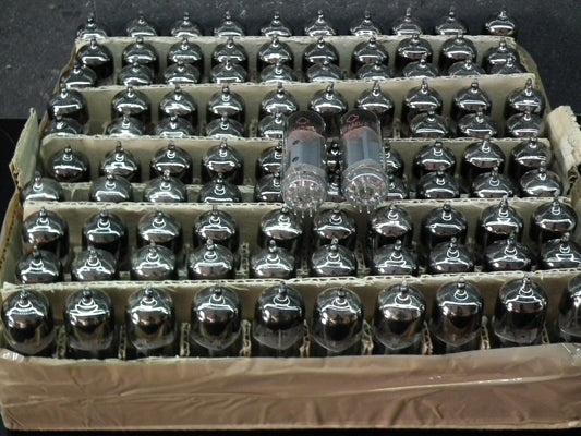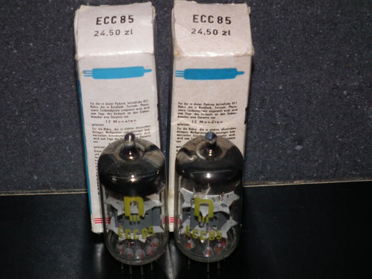 Matched pair ECC85 RFT NOS NIB Inclined Big O Getter, early 60s