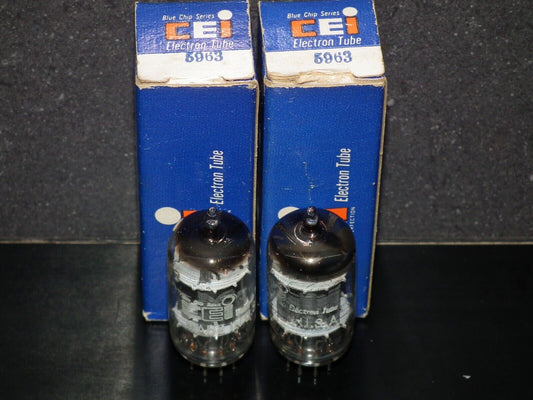 5963 CEI Made in USA 12AU7 ECC82 NOS Matched pair Long Box Plates O Getter