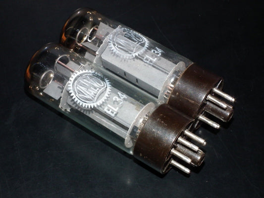 EL34 6CA7 Mullard Xf2 OO Getter Welded Anodes Platinum Matched Pair Tested NOS