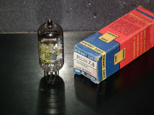 PCC88 Miniwatt Dario 7DJ8 DUAL STAGE GETTER NOS NIB Yellow Logo