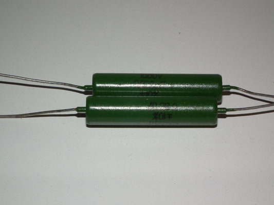 Two vintage PIO capacitors 1uF 350V MICROFARAD perfect for tube audio glass end