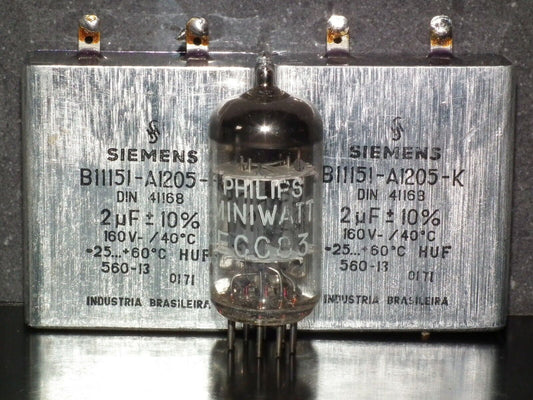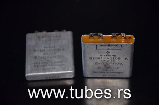 Two vintage Siemens PIO capacitors 0.5 uF + 0.5 uF 160V Klangfilm tube audio