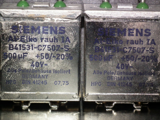 Two NOS vintage Siemens capacitors 500uF 40V Klangfilm audio W.Germany 500mfd