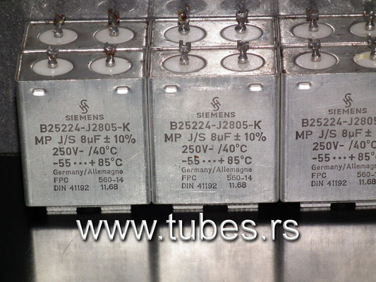 Two vintage Siemens PIO capacitors 8 uF / 250V Klangfilm tube audio West Germany