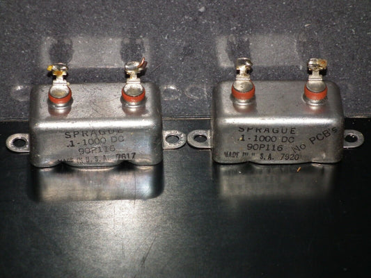 Two (2 pcs) RARE PIO Capacitors 0.1mfd 1000V 0.1u Sprague USA