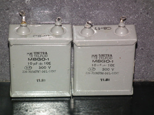 Two vintage Unitra PIO capacitors 10uF 300V 10mfd tube audio Glass End Seal 1981