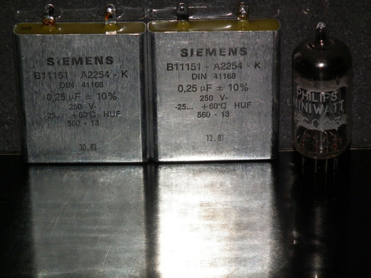 Two vintage Siemens PIO capacitors 0.25 uF / 250V Klangfilm tube audio 0.25 mfd