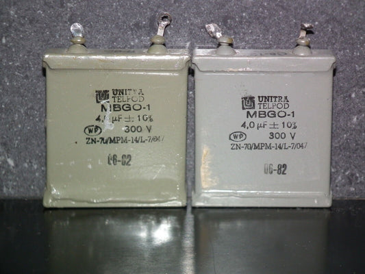 Two vintage Unitra PIO capacitors 4uF 300V 4mfd tube audio Glass End Seal 1981