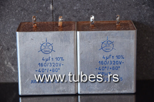 Two vintage PIO capacitors 4uF 160/320V Iskra Yugoslavia for tube audio preamp