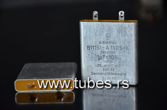 Two vintage Siemens PIO capacitors 1 uF / 160V Klangfilm