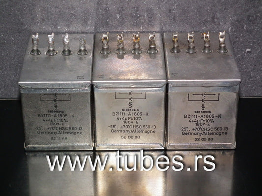 One vintage Siemens PIO capacitors 4 + 4 uF / 160V Klangfilm West Germany 1968